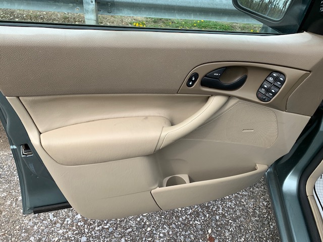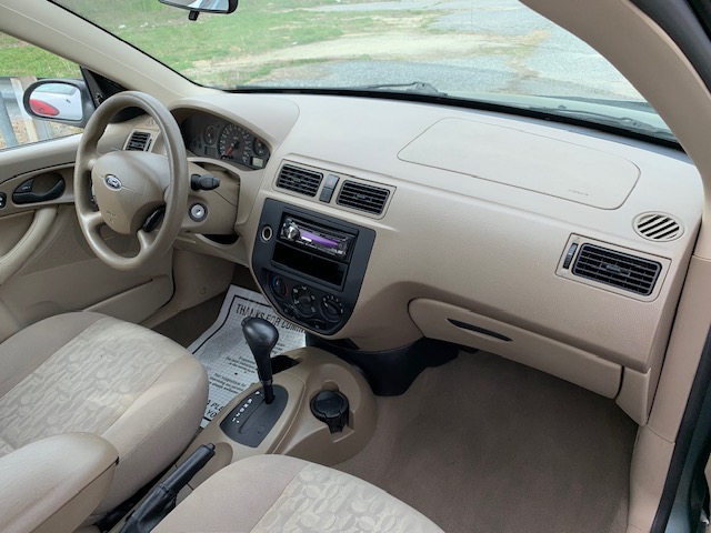 This is a 2005 FORD FOCUS ZX4 SE 4 DOOR. It is green and has 99,165 miles. Options include: 2.0L 4 CYL., AUTO, PS, PB, AC, PW, PDL, TILT, CRUISE, FACTORY GAUGES, AM/FM STEREO RADIO WITH CD PLAYER, DRIVER AND PASSENGER AIRBAGS, TAN CLOTH INTERIOR, REAR DEFROSTER, ALLOY WHEELS, AND ALL GOOD TIRES.